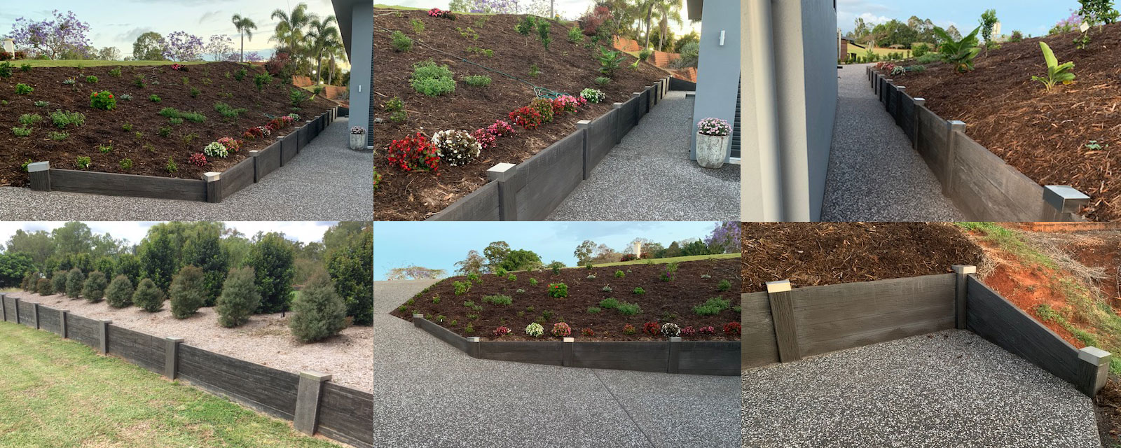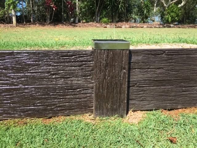 FNQ Precast’ s retaining wall system is an innovation in landscaping. Our wood grain posts are uniquely designed to combine with our sleepers for creating and building retaining walls. Using wood grain look sleepers and posts combines the aesthetic charm of natural wood with the longevity and low maintenance of concrete. Concrete is the perfect retaining wall building material as it also provides strength, durability, and it is pest resistant. You can simply create a designer feature built to last.